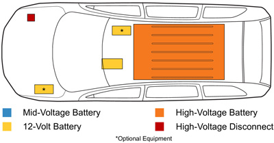 • Disconnect the high voltage (HV) battery service disconnect (if applicable).