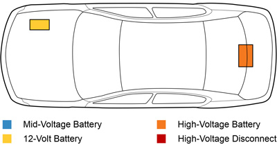 When welding on a hybrid vehicle or electric vehicle, follow the same precautions as when welding on a conventional vehicle. In addition, there are precautions to take with the high-voltage battery. As a best practice, disconnect both the 12 V battery and the high-voltage battery service disconnect. (Note: Always disable the high-voltage battery following the vehicle makers repair information and follow all safety precautions.)