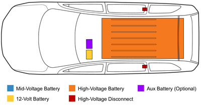 When welding on a hybrid vehicle or electric vehicle, follow the same precautions as when welding on a conventional vehicle. In addition, there are precautions to take with the high-voltage battery. As a best practice, disconnect both the 12 V battery and the high-voltage battery service disconnect. (Note: Always disable the high-voltage battery following the vehicle makers repair information and follow all safety precautions.)